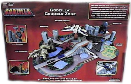 Godzilla Crumble Zone Set | Bandai Godzilla Toys | For hours of Godzilla fun...recreate your favorite Godzilla battle scenes with the collapsing bridge, and collapsing and falling buildings, and colorful mat. Set includes the following five vinyl, figures which are about 3.5" tall: Mothra (Imago), Mothra (Larva), Godzilla, Baragon and King Ghidorah. : Bandai Godzilla Toys